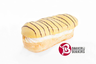 Een heerlijk soes gevuld met echte slagroom en overgoten met echte chocolade die een bananensmaak heeft